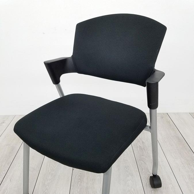 【シンプルスマートなスタッキングチェア!分厚いクッションで長時間でも快適な座り心地!】■スタッキングチェア 肘付ミーティングチェア ■固定肘 ■キャスター付 ■ブラック ■背面樹脂/コクヨ(KOKUYO/プロッティ