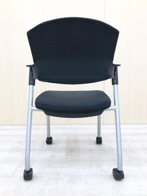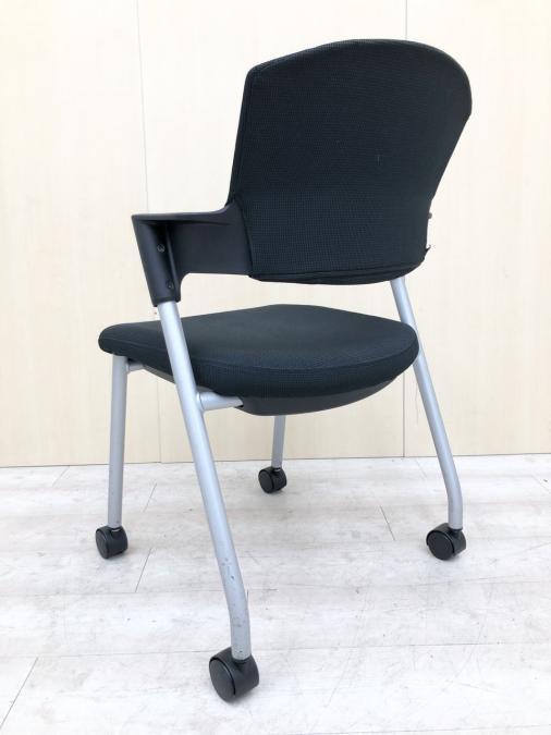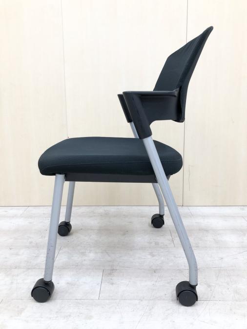 【シンプルスマートなスタッキングチェア!分厚いクッションで長時間でも快適な座り心地!】■スタッキングチェア 肘付ミーティングチェア ■固定肘 ■キャスター付 ■ブラック ■背面樹脂/コクヨ(KOKUYO/プロッティ
