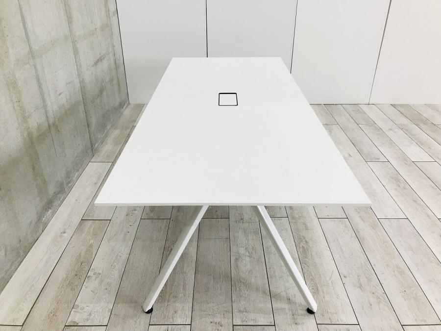 イトーキ DZテーブル W2100×D900 ホワイト天板×ホワイト脚のシャープなデザイン 船底エッジ 配線カバー【IB】- 在庫数