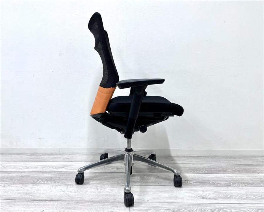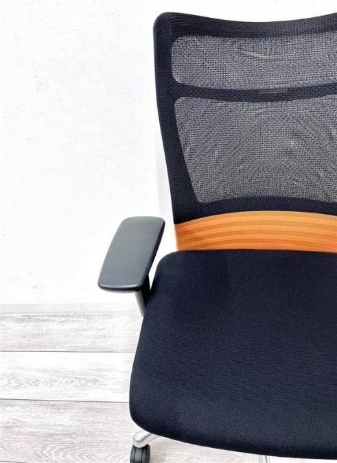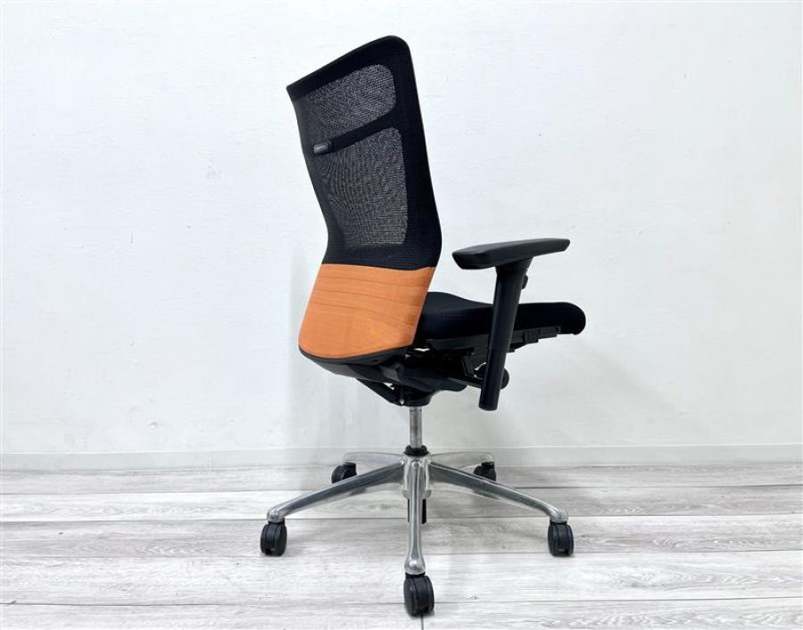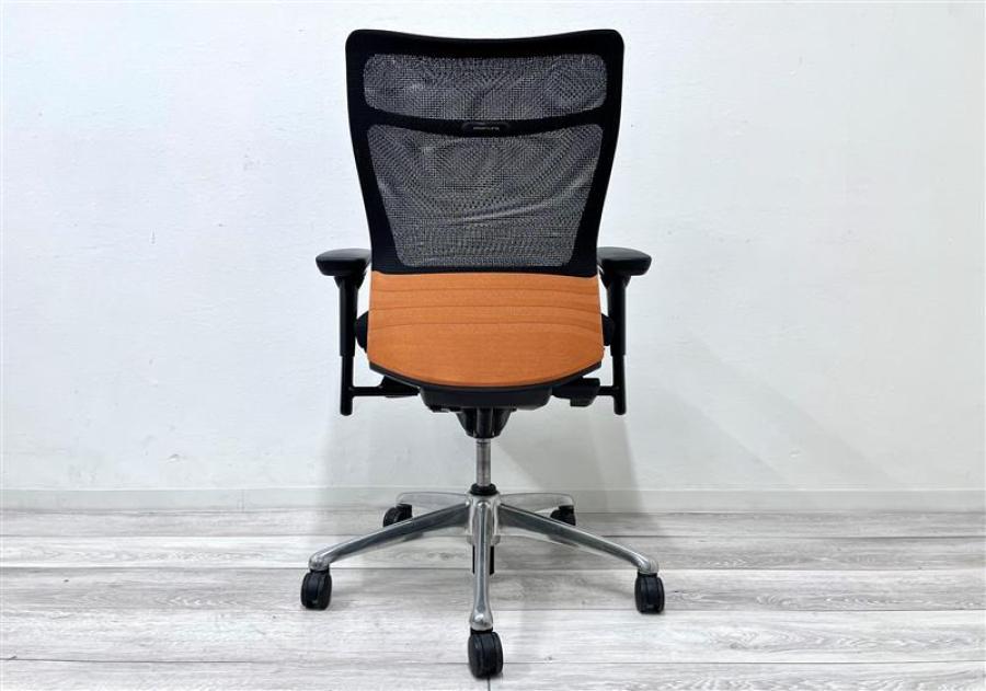 【仙台店共通在庫品】【定価13万円】【人間工学に基づいた快適な座り心地!背中全体を優しくサポート!】■オカムラ製 フィーゴメッシュチェア(feego) 肘付ハイバック ■ブラック×オレンジ ■可動肘 ■背面メッシュ【背あてのしなやかな曲線が背中にフィット!】サーキュラーバリューCO2削減量の算出について