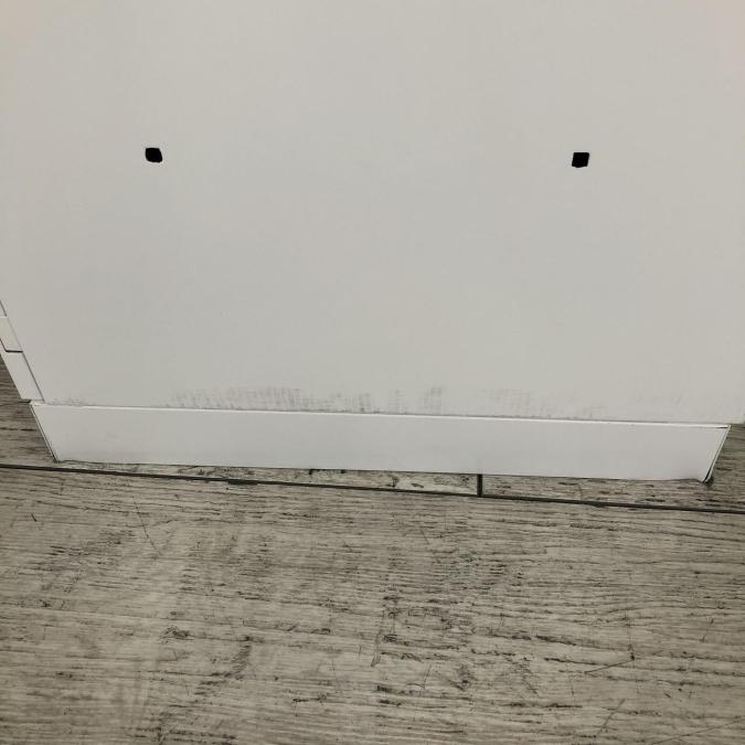 - 目立つ箇所複数あり深い傷・凹みが商品全体にある。(例、天板、正面、背部、サイド部分にある。)