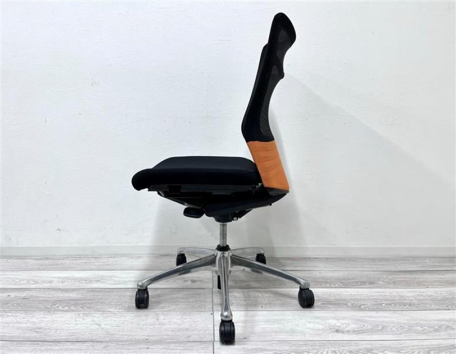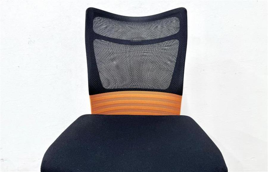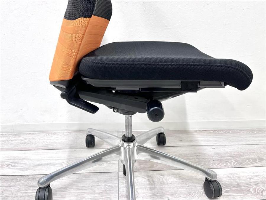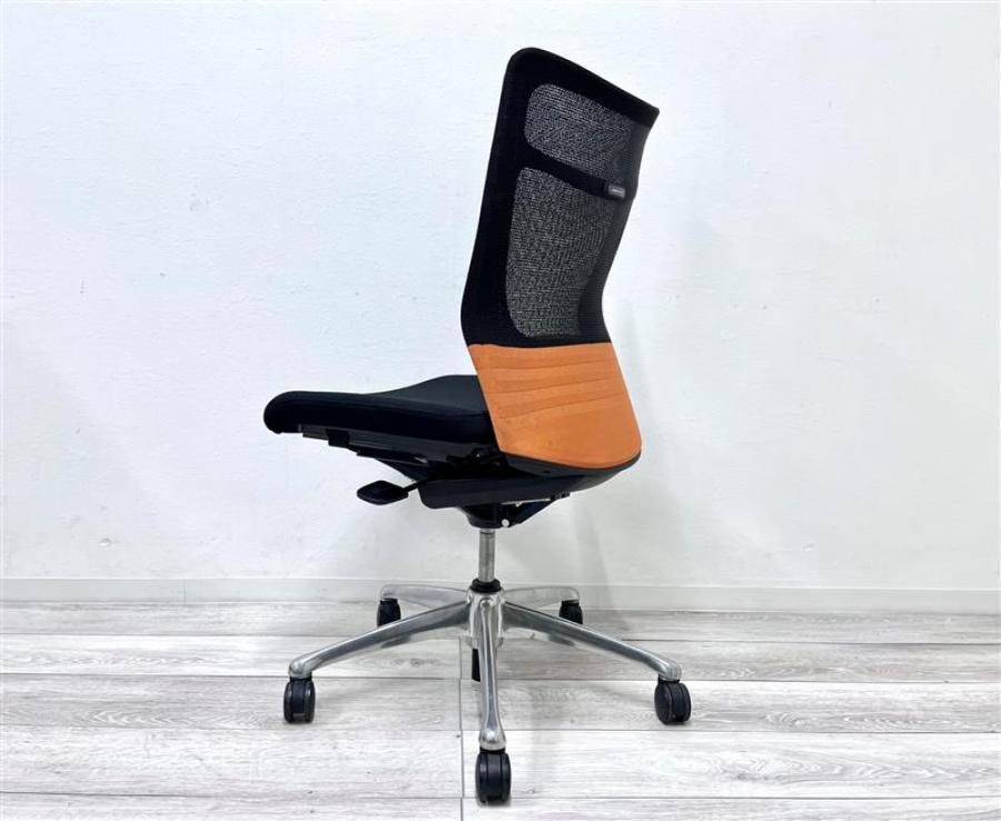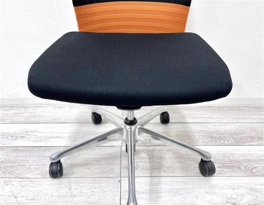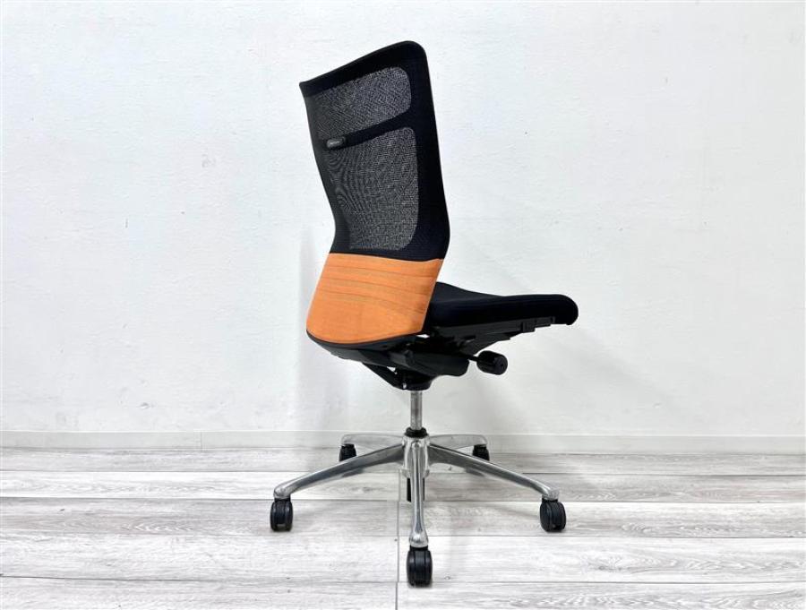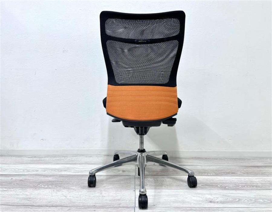 【座り心地GOOD!】【人間工学に基づいた快適な座り心地!背あてのしなやかな曲線が背中にフィット!】■オカムラ(okamura)製 フィーゴ(feego)チェア 肘無 ハイバック 背面メッシュ ■オレンジ×ブラック【IB】