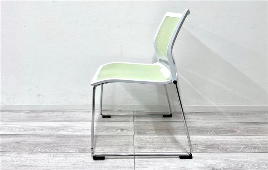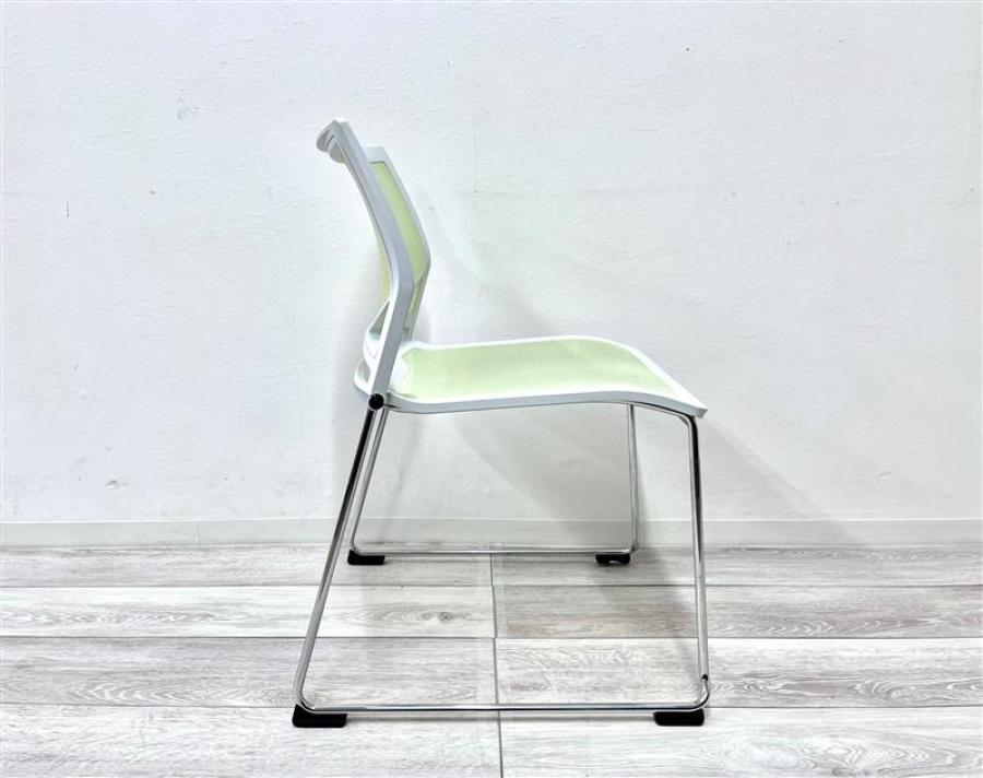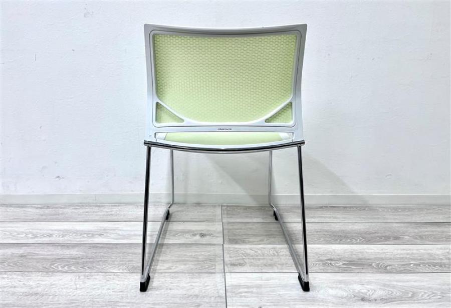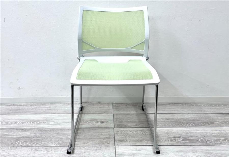 【在庫入替セール品】【定価約4万円】【重ねて省スペースに格納できます!】■オカムラ Zart(ツァルト)シリーズ スタッキングチェア ■キャスター無 ■ピスタチオグリーン ホワイトシェル 背座メッシュ- 仙台店