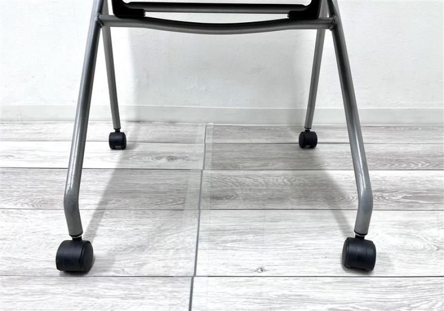 【セミナーや会議用にオススメ!平行ネスティングで省スペース化!】■イトーキ製 マノス ネスティングチェア ■背パッド付 キャスター付き ■ネイビーブルー オフィスバスターズ心斎橋店 ロット在庫
