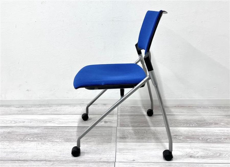 【関東倉庫在庫品】【フレキシブルに使える!平行ネスティングで省スペース化!】■イトーキ(ITOKI)製 マノス(MANOSS) ネスティングチェア ミーティングチェア ■背パッド付 ■キャスター付 ■ブルー【弊社使用欄:A01014525】【ECBMC】