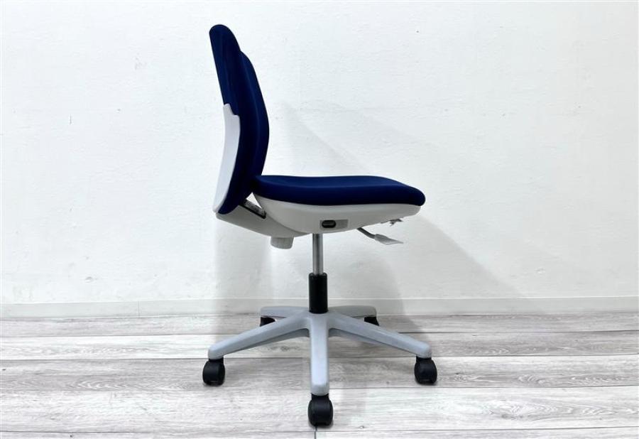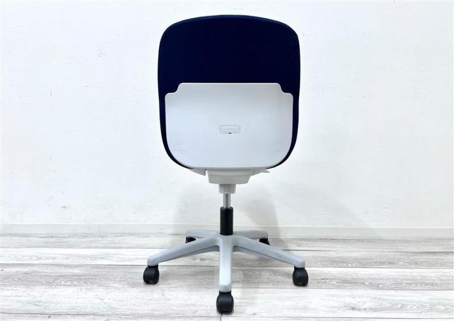 ★ウチダ製 エニーザ 肘無し ダークブルー ローバック ホワイトフレーム シンプルでコンパクトな見た目が可愛らしい! 小さめのデスクとも相性抜群! 肘無しローバックチェア!!