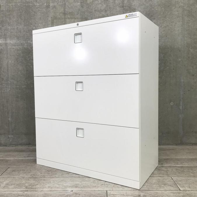 【ファイル収納にオススメ!高品質で使いやすい人気シリーズの3段ラテラル書庫!】■オカムラ(okamura)製 レクトラインシリーズ 3段ラテラル書庫 ローキャビネット H1100㎜ ■ホワイト ■シリンダー鍵 ■天板付き(天板:ホワイト) ※日焼け有