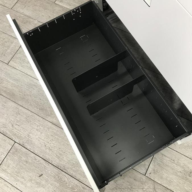 【使いやすさで選ぶならコレ!大容量の三段キャビネット】■オカムラ(Okamura)製 レクトラインシリーズ(Rectline) 3段ラテラル書庫 ローキャビネット ■天板付き ■シリンダー錠 ■ホワイト