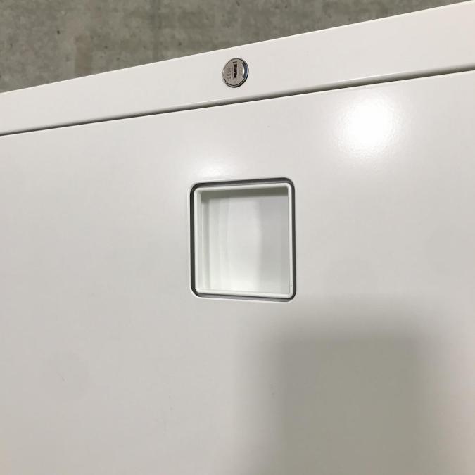 オカムラ レクトライン 3段ラテラル書庫 ホワイト天板 シリンダー錠 鍵付き ※取っ手部分に若干日焼けあり