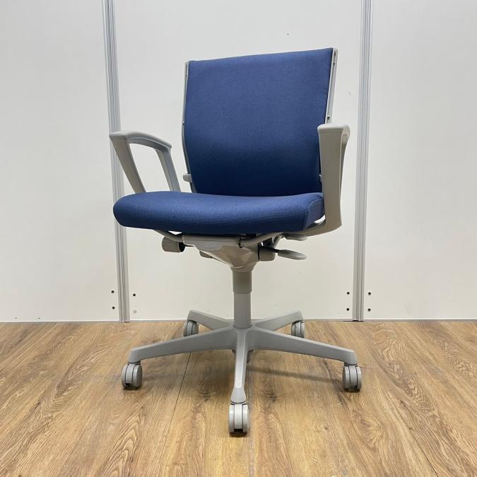 【関西倉庫在庫】■オカムラ(okamura)製 エスクードチェア 肘付ローバックチェア ■ダークブルー×グレーシェル ■デザインアーム ■ランバーサポート 【弊社使用欄:A01029268】