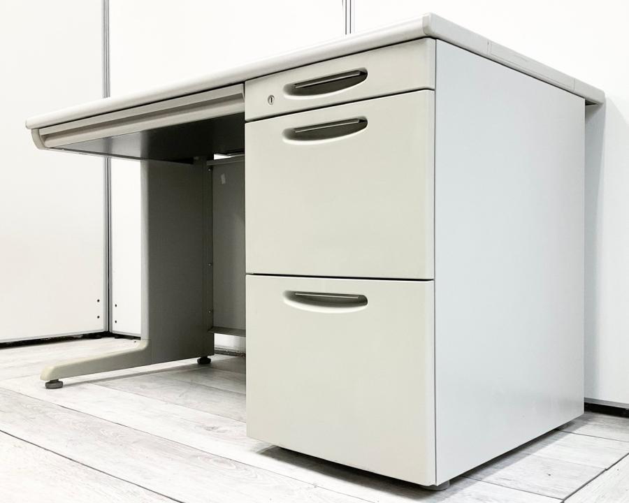 【オカムラの超定番シリーズ!袖一体型で書類をたっぷり収納可能!】■オカムラ (okamura)製 SD-Vシリーズ 片袖机 W1200mm×D700mm ■シリンダー錠 ■ライトグレー 【弊社使用欄:A01034077】