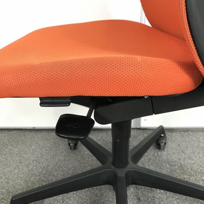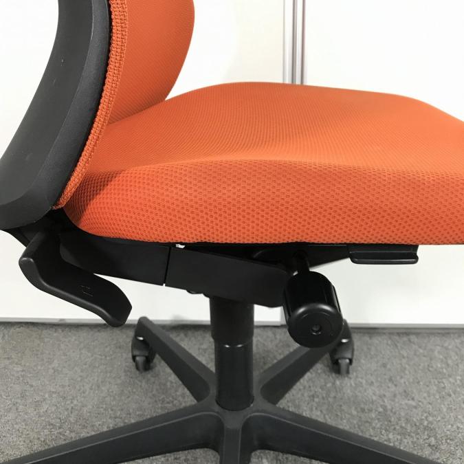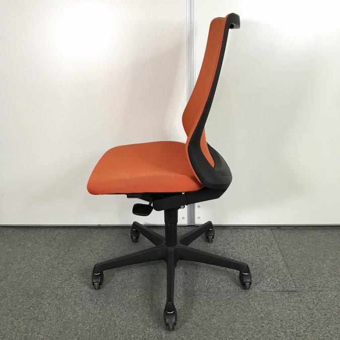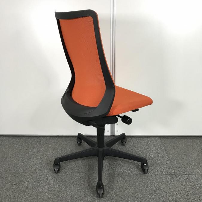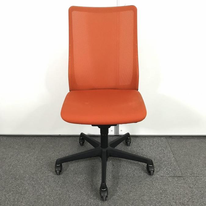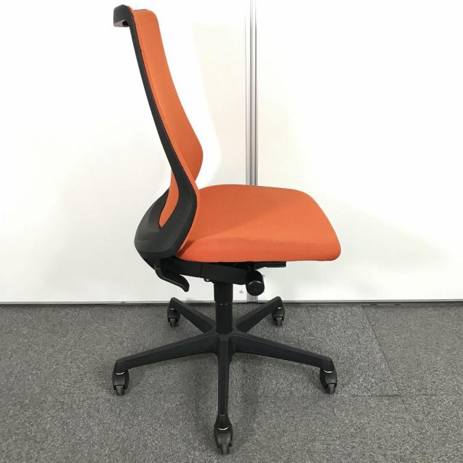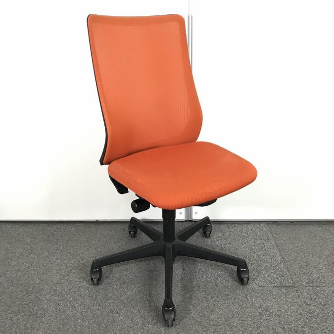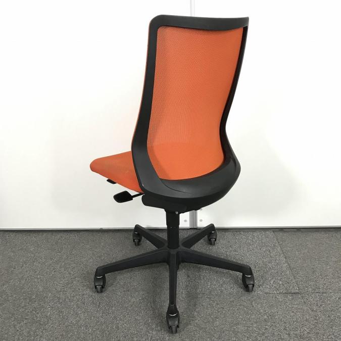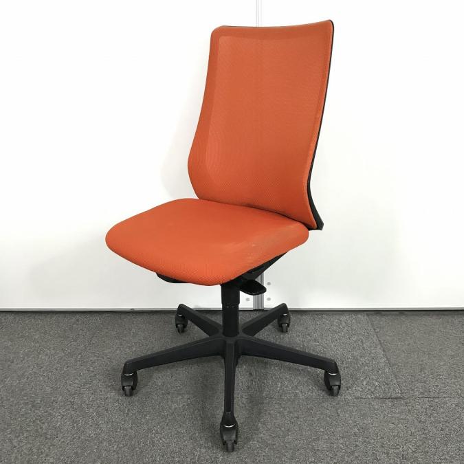 【腰まわりをしっかりホールド!長時間作業も快適フィット!】■オカムラ(okamura)製 フルーエントチェア ハイバック肘無し ■背面メッシュ ■オレンジレッド×ブラックフレームサーキュラーバリューCO2削減量の算出について