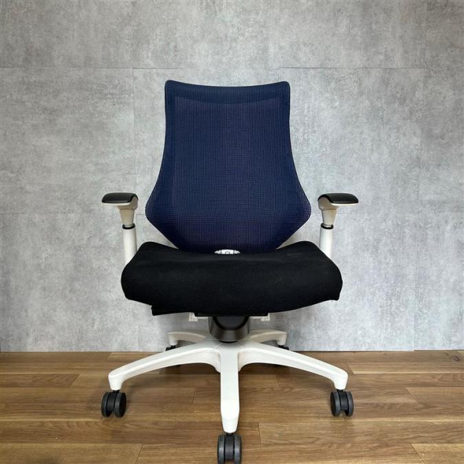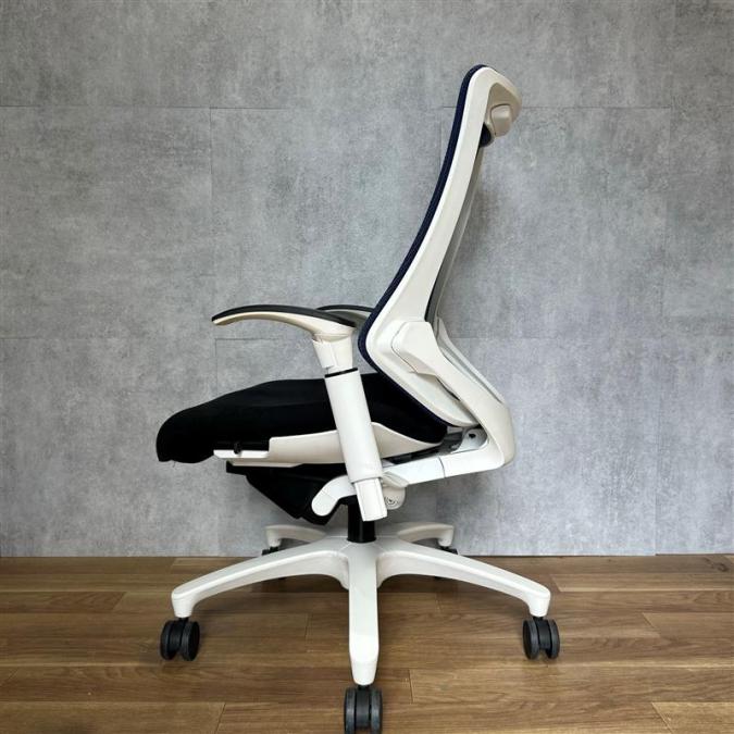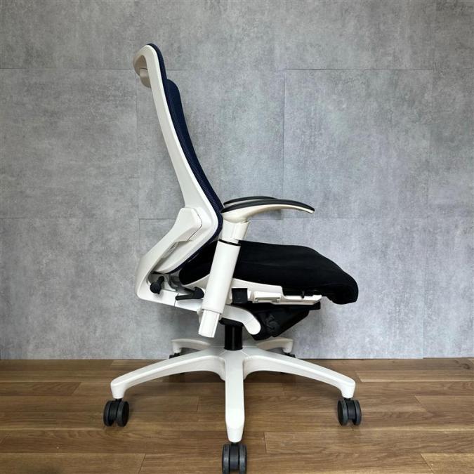 【最先端のデザインに快適な座り心地!】■イトーキ製 エフチェア 可動肘付 ネイビーブルー ■三次元フォルムが腰にフィット!【在庫入替セール品(本在庫限定価格)】