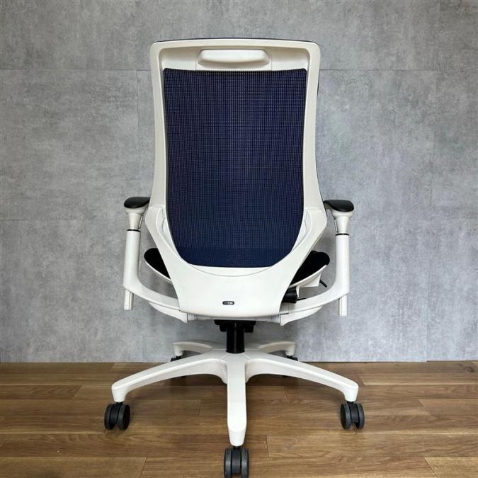【姿勢の変化にフレキシブルに対応!スタイリッシュで座り心地も抜群な高機能チェア!】■イトーキ(ITOKI)製 エフ(f)チェア 肘付き ハイバック 背面メッシュ ■可動肘 ■ネイビーブルー ×ブラックシェル