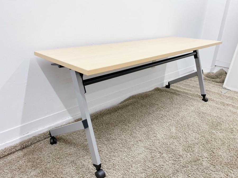 【幅1800サイズ】会議室やセミナーにおすすめです! 内田洋行/プラッテ/ナチュラル木目 キャスター付き 幕板付き テーブル 会議
