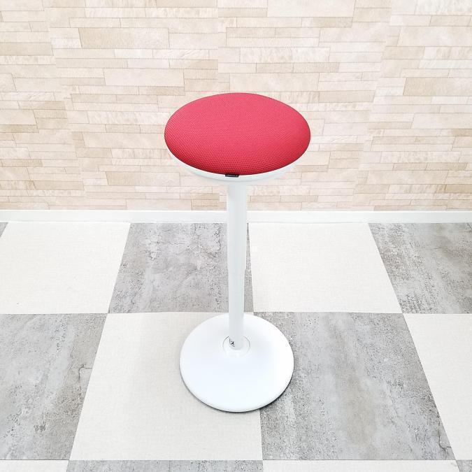 【「座る」と「立つ」のいいとこ取り!】■オカムラ(okamura) ピルエット カウンターチェア スツール ■レッド シェル:ホワイト【高さ調節可能なパーチングスツール!】- 大阪・堺店