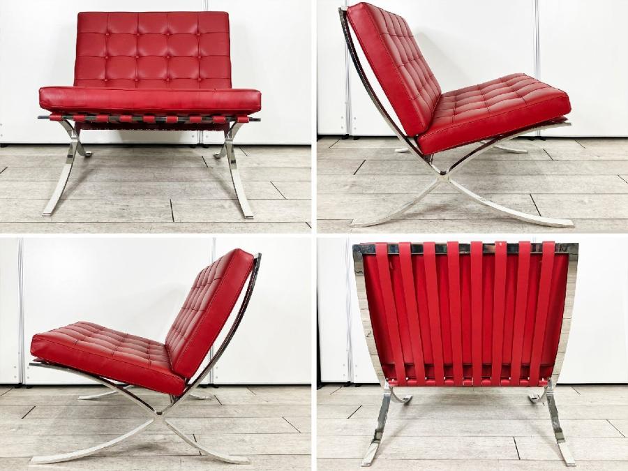B)knoll/ノール 本革 バルセロナチェア ミース・ファンデル・ローエ レッド 正規品- デザイナーズ家具センター
