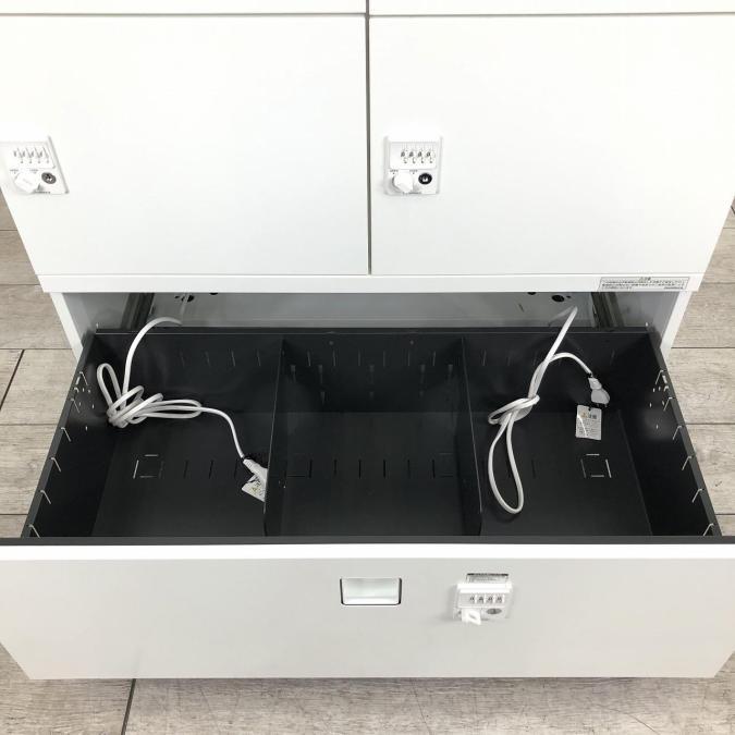 【4台入荷】【4人用パーソナルロッカー+1段ラテラル!パーソナルロッカーには珍しいコンセント付で便利!】■オカムラ製 4人用パーソナルロッカー+1段ラテラル ■ダイヤル錠 ■ホワイト ■コンセント付 【増員・拠点開設に!】- 神戸・三宮店