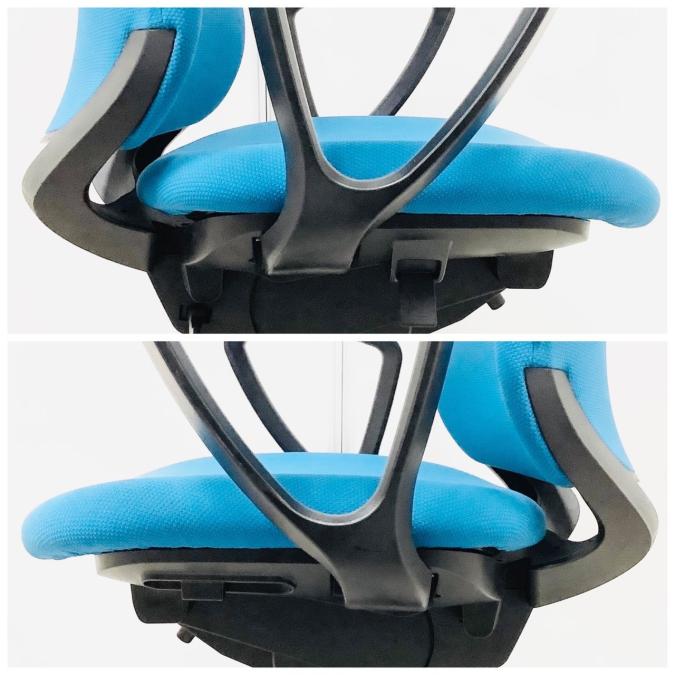 - 座面の高さは上下に90㎜、奥行は前後に50㎜調節可能。さらに骨盤を支えるポスチャーシート採用で着座時の前滑りを防ぎます。