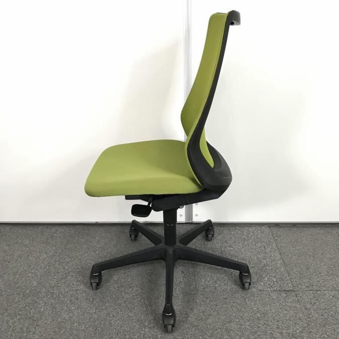【腰まわりをしっかりホールド!長時間作業も快適フィット!】■オカムラ(okamura)製 フルーエントチェア ハイバック肘無し ■背面メッシュ ■グリーン×ブラックフレーム- 神戸・三宮店