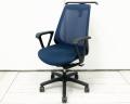 ★【K12】【T12】【商品入替のため、残り1脚限り】イトーキ製 ノナ ネイビーブルー ブラックフレーム 肘付き アジャスタブル※可動肘 ハイバック 背面メッシュ コートハンガー付 脚回りがコンパクトのため省スペースでも設置しやすい! 肘付きハイバックチェア