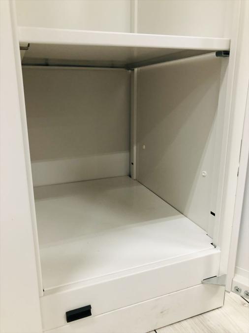 ホワイトのすっきりとしたデザインで使い勝手の良い縦型ロッカーです。