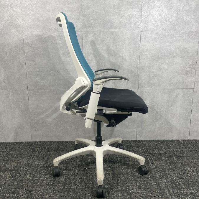 【在庫セール品・6脚限定】【T12】【K12】■イトーキ(ITOKI)製 エフ(f)チェア 肘付ハイバック ■ストロングブルー×ホワイトシェル 資格背面メッシュ ■可動肘 ■ハンガー付き【姿勢の変化にフレキシブルに対応! スタイリッシュで座り心地も抜群な高機能チェア!】