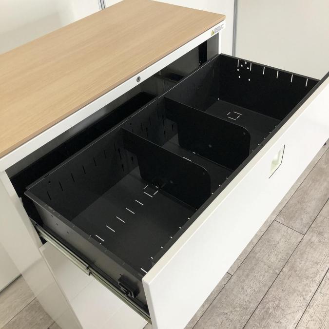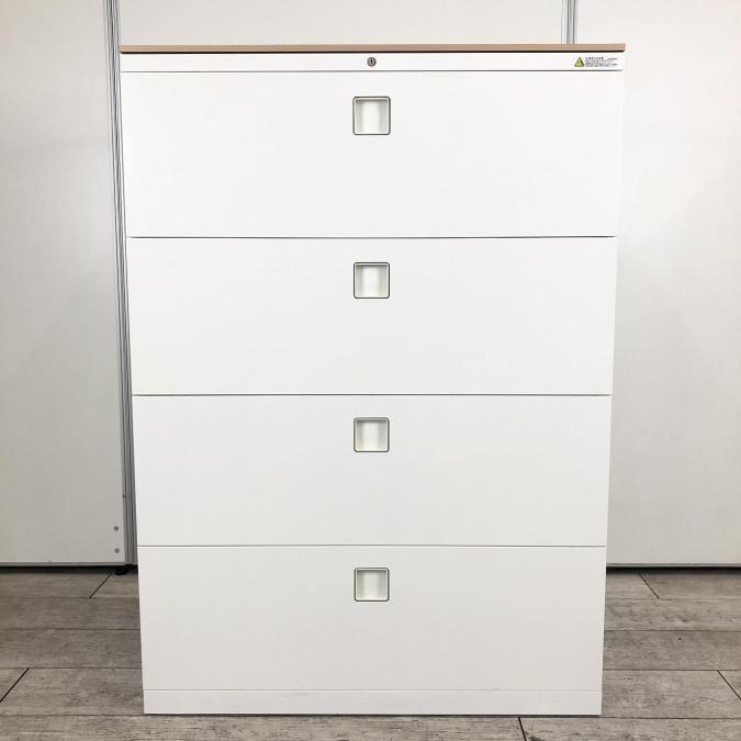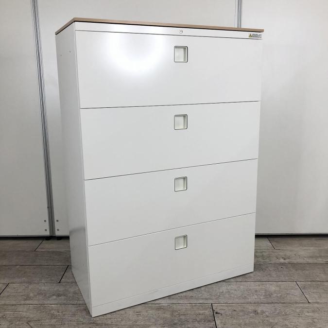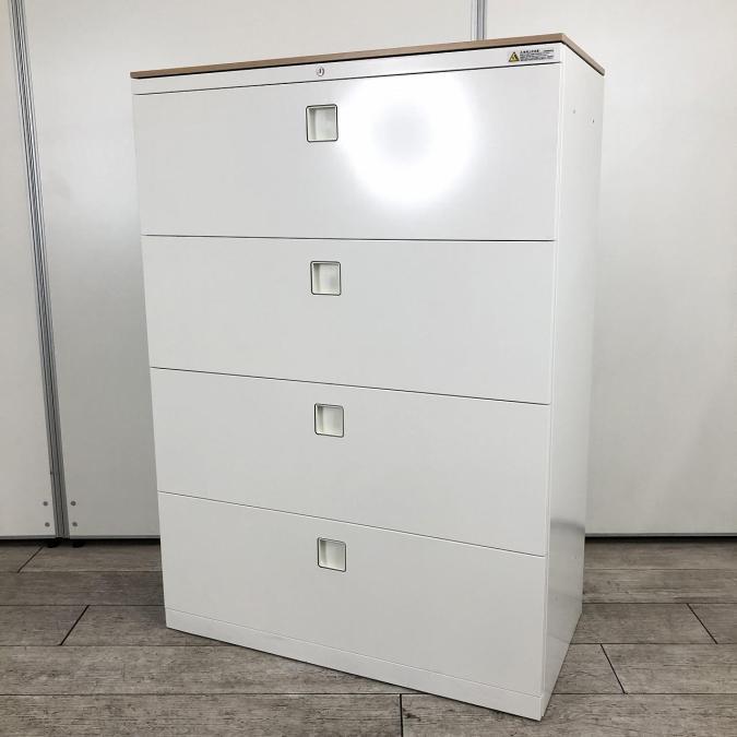 【オフィスの必需品!珍しい大容量の4段キャビネット!】■オカムラ(okamura)製 レクトライン(Rectline)シリーズ 4段ラテラル ローキャビネット ■ホワイト×ナチュラル天板 ■シリンダー錠 【弊社使用欄:A00988065】サーキュラーバリューCO2削減量の算出について