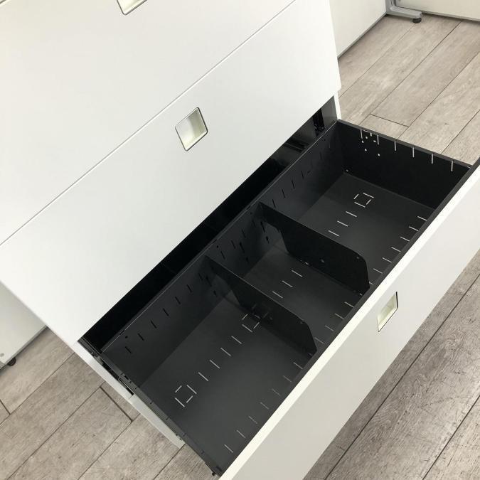 【使いやすさで選ぶならコレ!大容量の三段キャビネット】■オカムラ(Okamura)製 レクトラインシリーズ(Rectline) 3段ラテラル書庫 ローキャビネット ■天板付き ■シリンダー錠 ■ホワイト