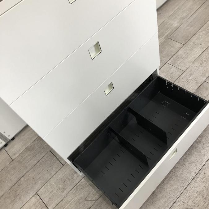 【オフィスの必需品!大容量の三段キャビネット!】■オカムラ(okamura)製 レクトラインシリーズ 3段ラテラル ローキャビネット ■天板/ベース付 ■シリンダー錠 ■ホワイト 【弊社使用欄:A01037187】