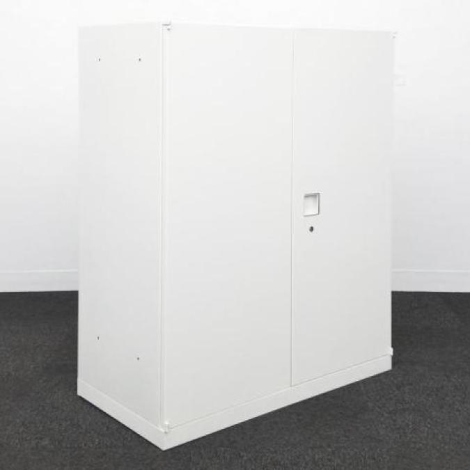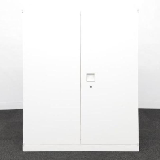 【オフィスの書類をスッキリ整理!取っ手がどの方向からでも開くマルチハンドルが人気!】■オカムラ(okamura)製 レクトラインシリーズ ローキャビネット 両開き書庫 H1250㎜ ■ホワイト ■シリンダー錠