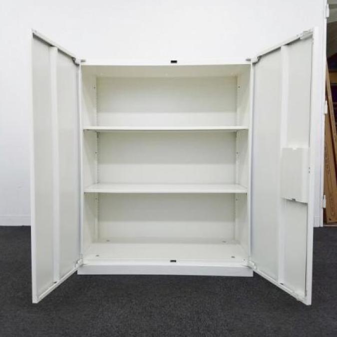 人気のホワイト色、観音開き扉タイプの書庫です。