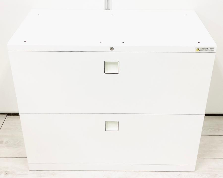 ■オカムラ(okamura)製 レクトラインシリーズ 3段ラテラル ローキャビネット ■天板・ベース付 ■シリンダー錠 ■ホワイト ■収納力抜群 外部倉庫在庫