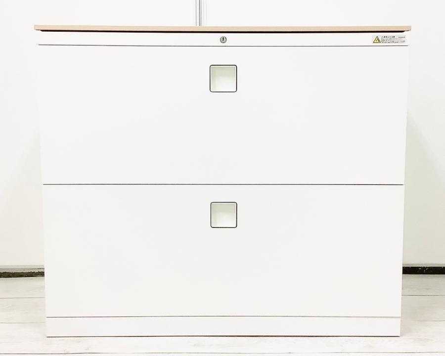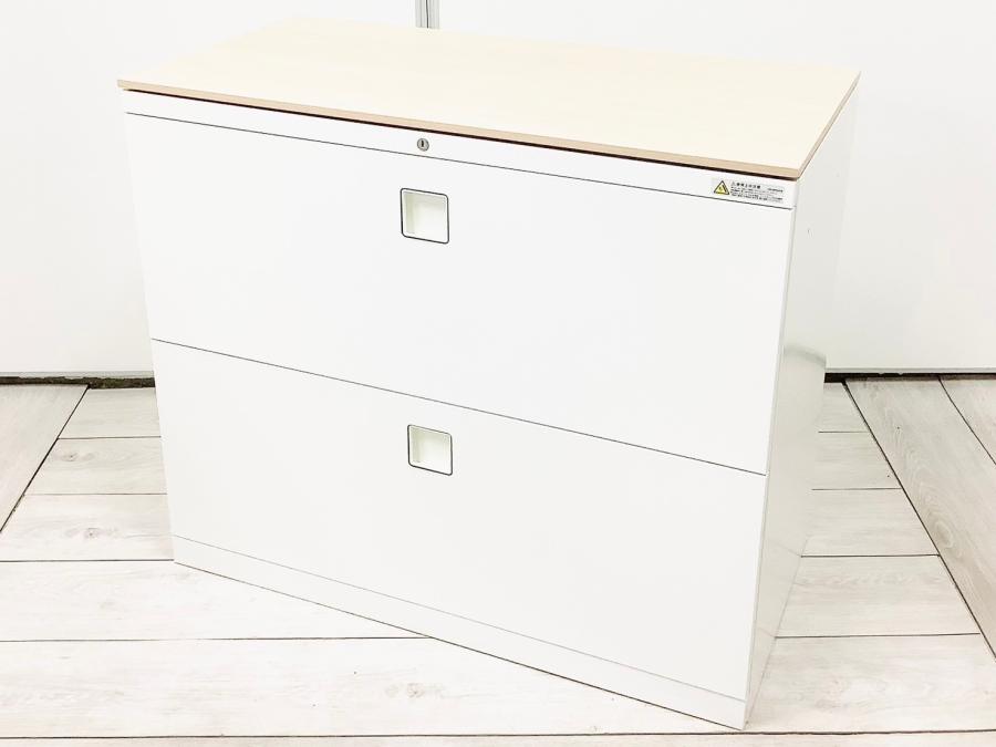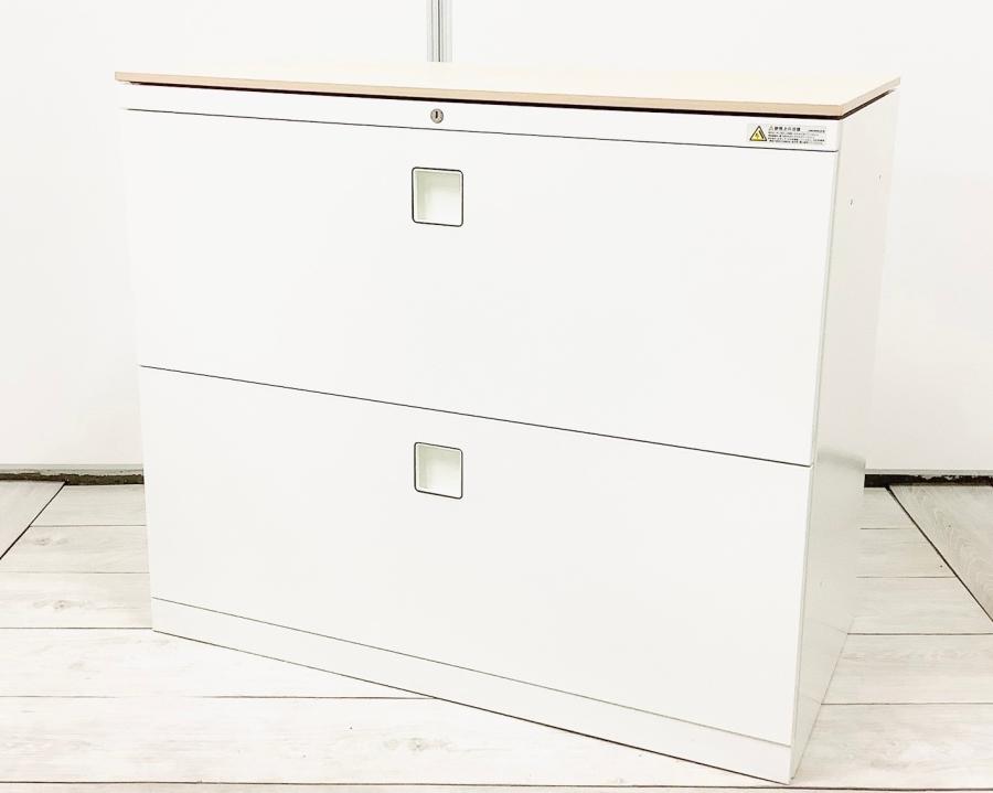 【ファイル収納にオススメ!高品質で使いやすい人気シリーズの3段ラテラル書庫!】■オカムラ(okamura)製 レクトラインシリーズ 3段ラテラル書庫 ローキャビネット H1100㎜ ■ホワイト ■シリンダー鍵 ■天板付き(天板:ホワイト) ※日焼け有