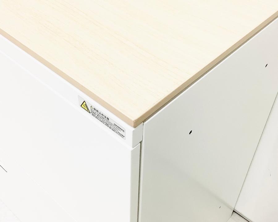 オカムラ レクトライン 3段ラテラル書庫 ホワイト天板 シリンダー錠 鍵付き ※取っ手部分に若干日焼けあり