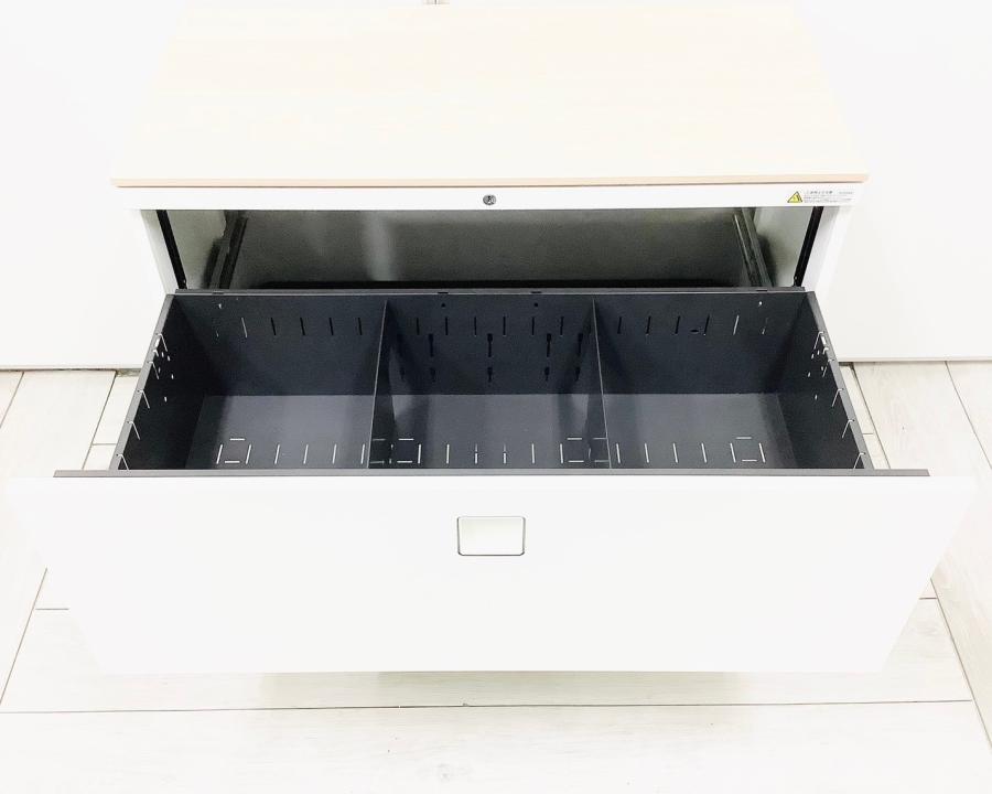 【オフィスの必需品!大容量の三段キャビネット!】■オカムラ(okamura)製 レクトラインシリーズ 3段ラテラル ローキャビネット ■天板/ベース付 ■シリンダー錠 ■ホワイト 【弊社使用欄:A01037187】