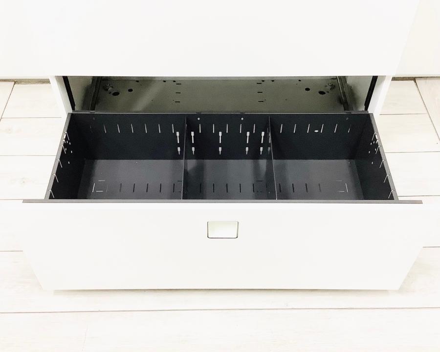 【オフィスの必需品!大容量の三段キャビネット!】■オカムラ(okamura)製 レクトラインシリーズ 3段ラテラル ローキャビネット ■ベース付 ■シリンダー錠 ■ホワイト 【弊社使用欄:A01037187】