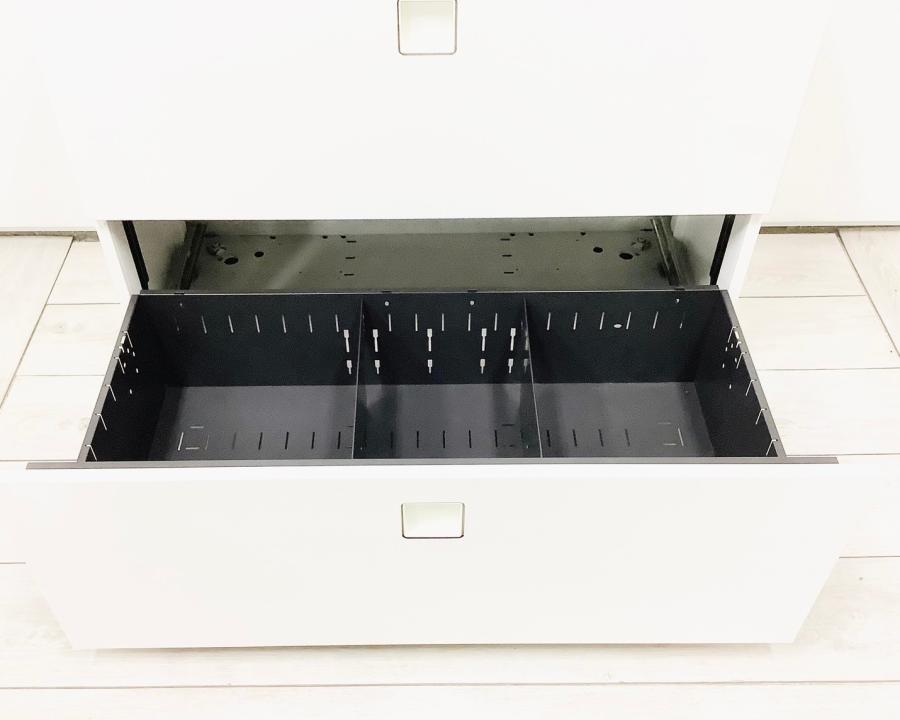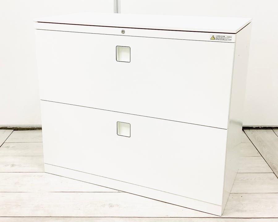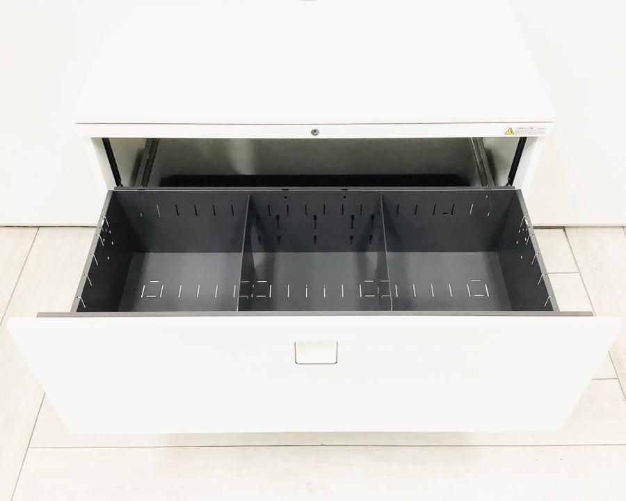 【3台入荷】【ファイル収納にオススメ!高品質で使いやすい人気シリーズの3段ラテラル書庫!】■オカムラ(okamura)製 レクトラインシリーズ 3段ラテラル書庫 ローキャビネット ■天板・ベース付 ■ホワイト ■シリンダー鍵
