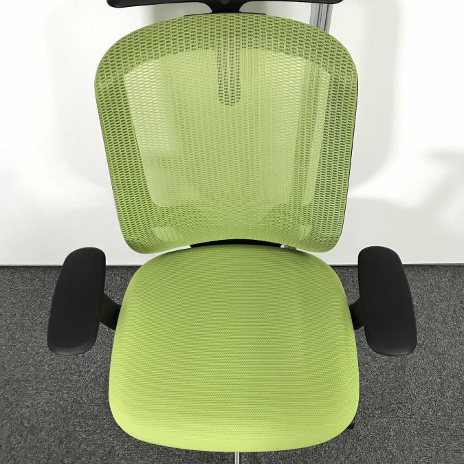 【前傾機能チェアの代名詞が入荷!大人気シルフィーチェア!木目デスクとも相性バッチリなライムグリーンのメッシュチェア!】■オカムラ(okamura)製 シルフィ(Sylphy) 肘付きハイバック ■可動肘付き ハンガー付き ■背面メッシュ ■グリーン×ブラックフレーム 【弊社使用欄:A00980629】- 日本橋店