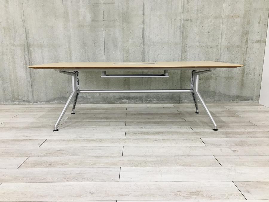 【会議室だけでなく休憩室でも!6~8名様対応・大型テーブル】■イトーキ(ITOKI) DDDシリーズ ミーティングテーブル 会議テーブル 幅2400×奥行900mm ■木目ナチュラル天板 脚シルバー色 オフィスバスターズ東大阪店