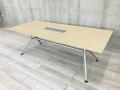 【上質な木目デザイン!シンプルなデザインの大型テーブル!】■イトーキ製 ミーティングテーブル DDDシリーズW2100×D900mm ■ナチュラル木目カラー×シルバー脚 ■配線ボックス付- 足立・葛飾店