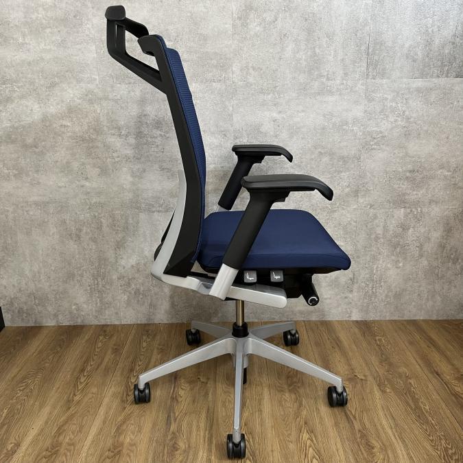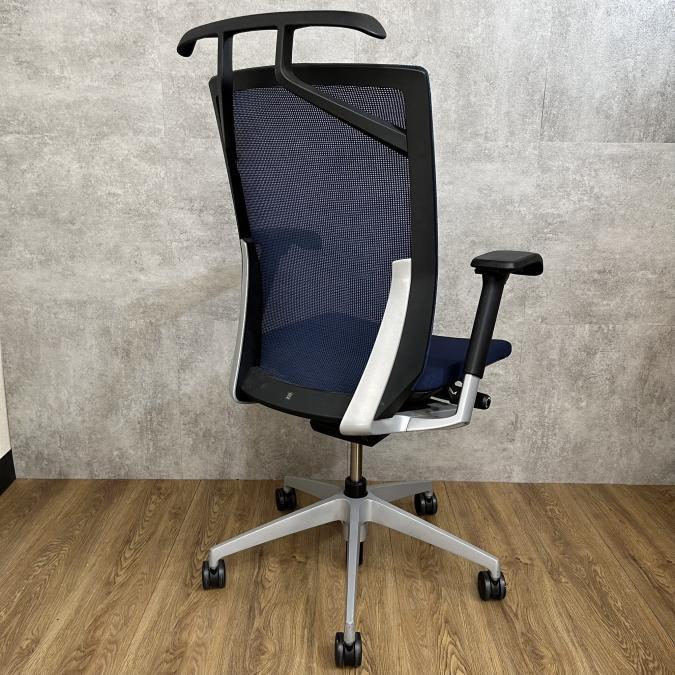 【シャープかつシンプルなデザイン!大きな背面が体にフィット!通気性がよく長時間でも快適な高級チェア!】■イトーキ(ITOKI)製 ヴェント(Vent)チェア 肘付き ハイバック 背面メッシュ ■可動肘・ランバー付き ■ネイビーブルー×ブラックシェル