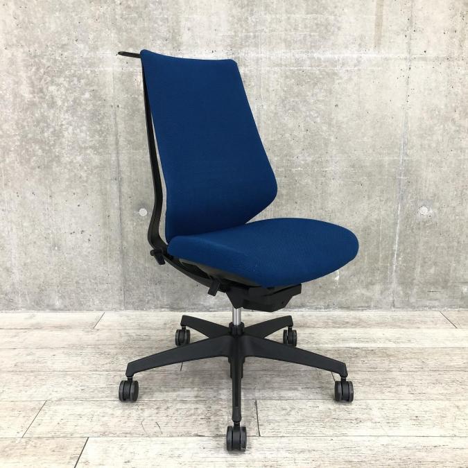 【在庫入替セール】コクヨ デュオラ 肘無しモデル クッションタイプ ブルー×ブラックフレームの定番のカラーリング コートハンガー付き ※背もたれに破れ有り【T9】
