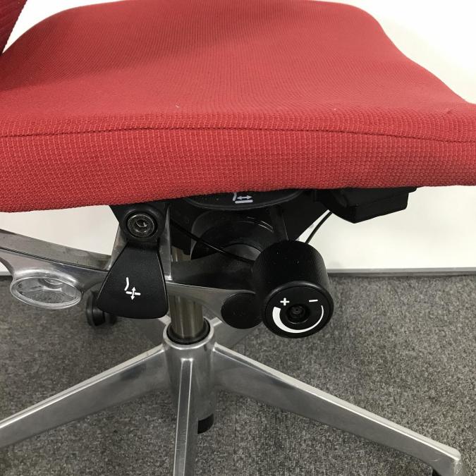 座面のすぐ右下にあるレバーの操作にて、座面位置の上下調整(100mm)が可能です。