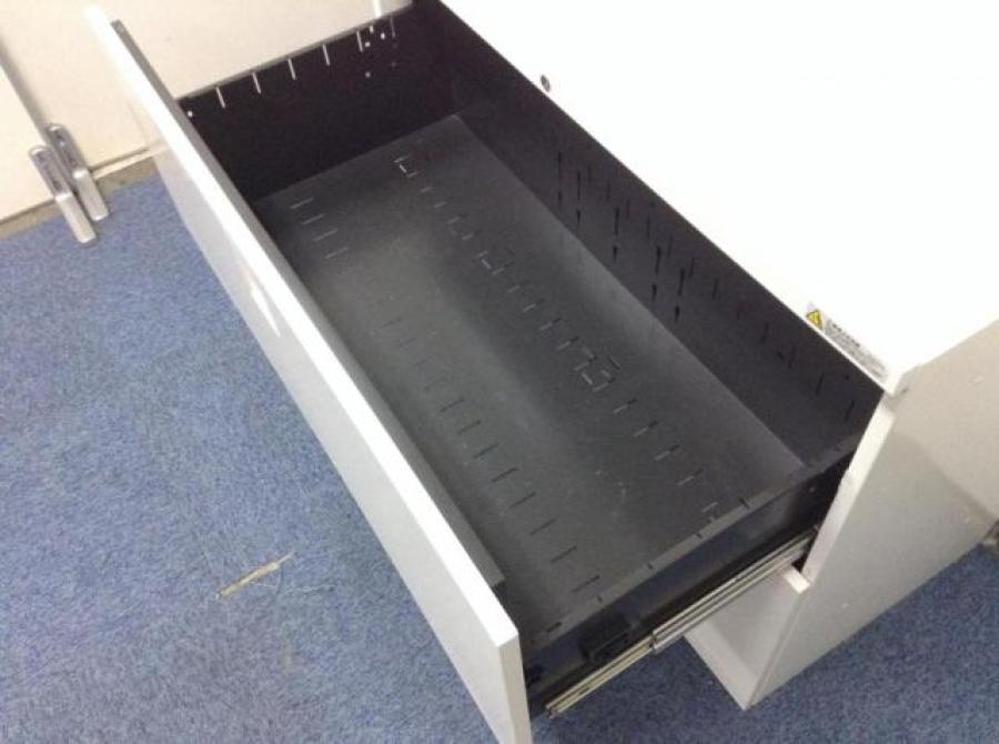 【使いやすさで選ぶならコレ!大容量の三段キャビネット】■オカムラ(Okamura)製 レクトラインシリーズ(Rectline) 3段ラテラル書庫 ローキャビネット ■天板付き ■シリンダー錠 ■ホワイト