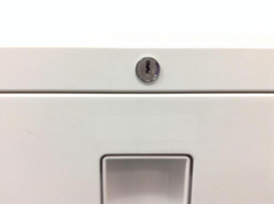 オカムラ レクトライン 3段ラテラル書庫 ホワイト天板 シリンダー錠 鍵付き ※取っ手部分に若干日焼けあり