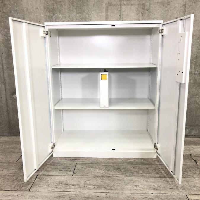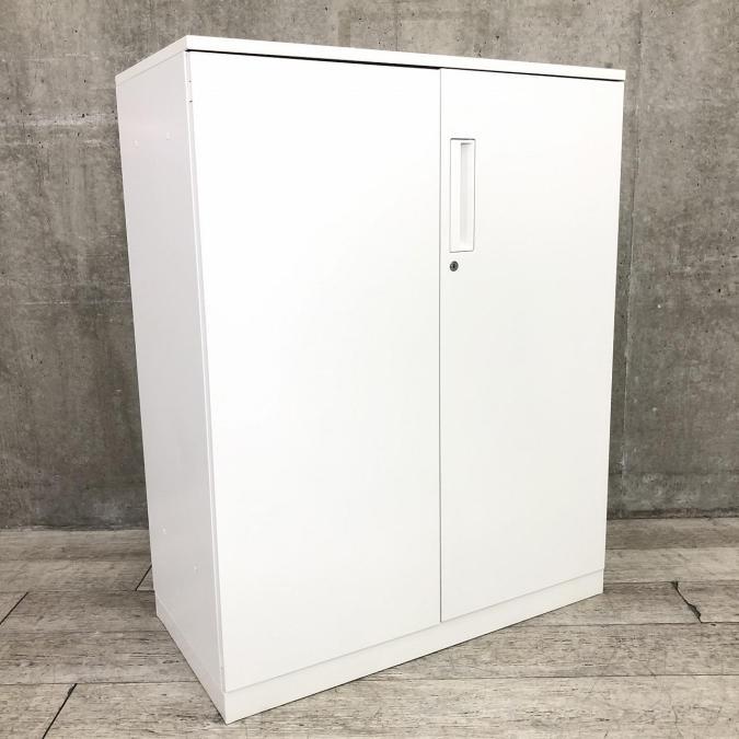 【収納物がひとめで分かる両開き戸タイプ!】■コクヨ(KOKUYO)製 エディア(EDIA)シリーズ 両開き書庫 ローキャビネット H1130㎜ ■天板・ベース付 ■ホワイト ■シリンダー錠【IB】