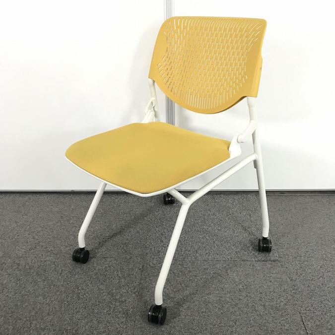 【関東倉庫在庫品】【シンプルなデザインで使いやすいミーティングチェア!】【在庫入替セール品】■オカムラ製 ルナ ネスティングチェア ■イエロー【弊社使用欄:A01021721】【ECBMC】