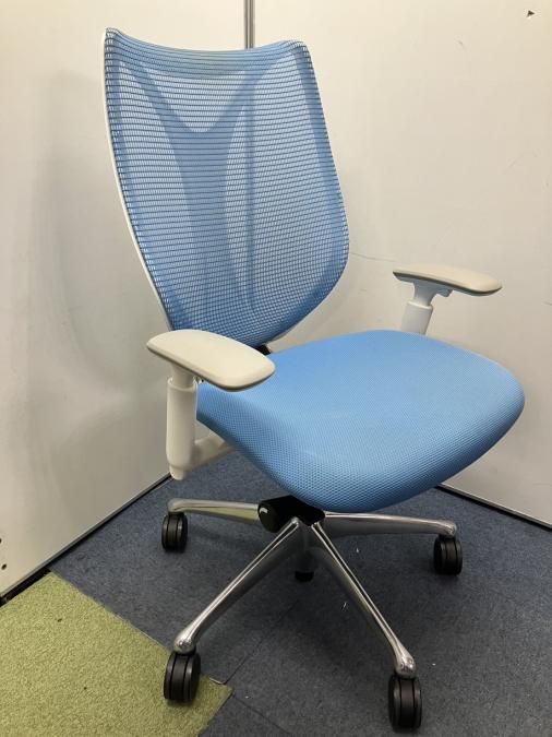 【在庫入れ替え】【限定1脚】オカムラの高級チェア! ■オカムラ製 サブリナ (Sabrina) ハイバック 肘付き ■可動肘 背面メッシュ ■アクアブルー- 名古屋本店