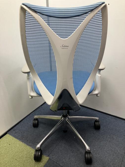 【在庫セール品】【定価約16万円】【前傾チルト付!流れるような美しいフォルムの最高級メッシュチェア!】■オカムラ(okamura)製 Sabrina(サブリナ) ハイバック 肘付き ■可動肘 ■背面メッシュ:アクアブルー/座面:ブルー×ホワイトフレーム【AD】